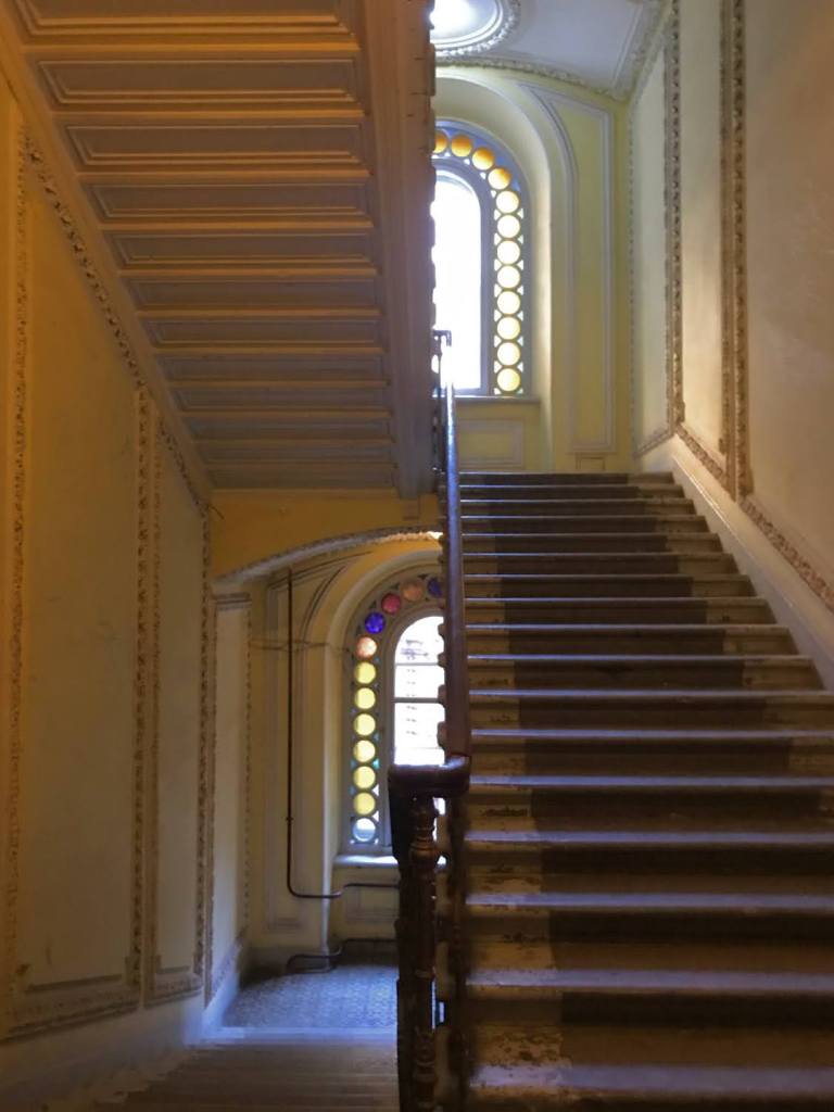 Notre exploration démarre par une immersion dans l’architecture singulière de la ville, où les immeubles carrés abritent des cours-puits et des escaliers d’apparat. Au fil de nos pas, je découvre l’histoire fascinante de ces bâtiments et leur évolution au fil du temps, notamment avec la transformation d’anciens appartements en communautés résidentielles.