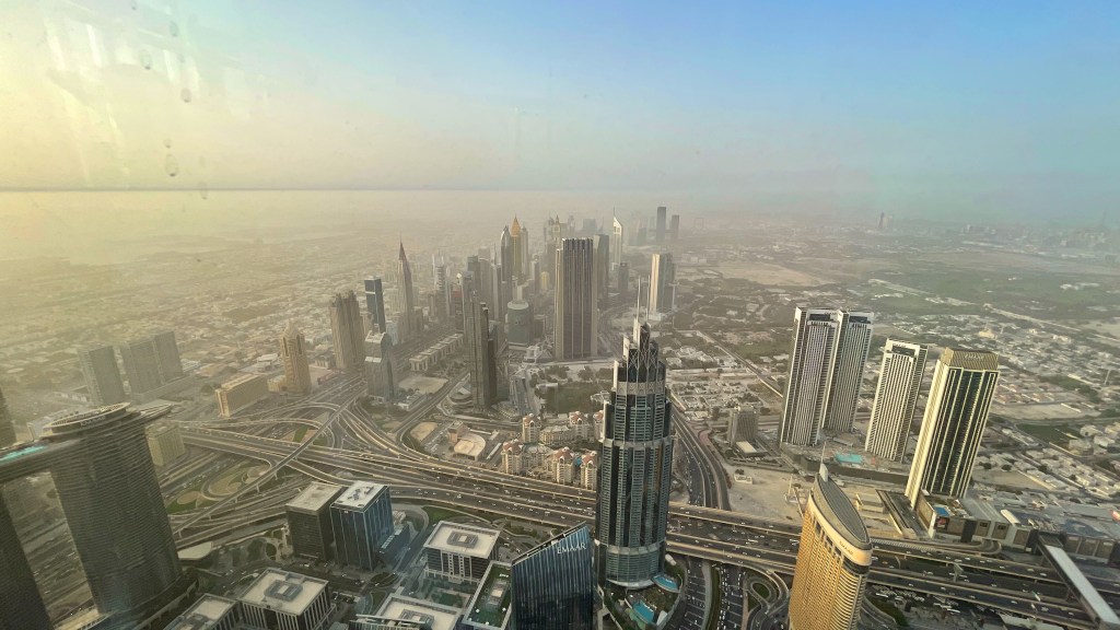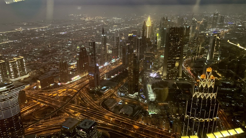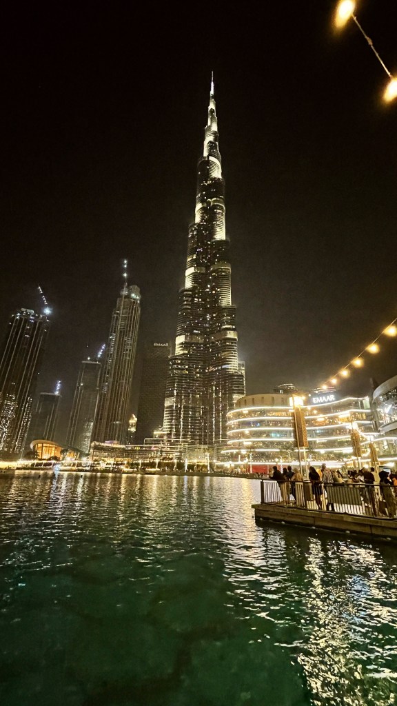 La journée s’est conclue en beauté au Burj Khalifa, avec une vue légèrement voilée mais toujours spectaculaire. Le coucher de soleil suivi du spectacle des fontaines ont ajouté une touche magique à cette expérience. Une journée riche en découvertes !