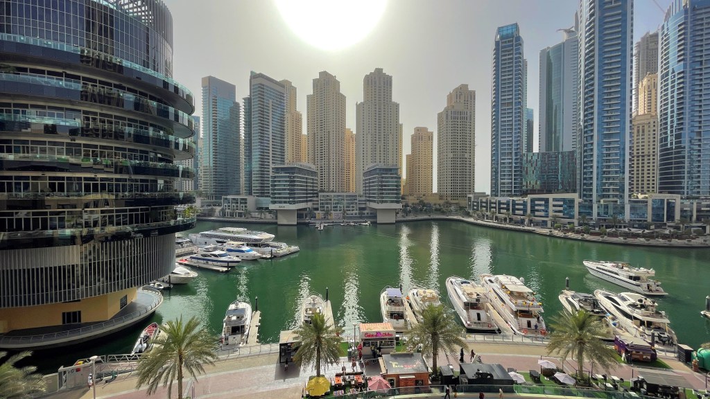 C’est ainsi que je me suis dirigée vers la Marina de Dubaï, déterminée à profiter de cette journée différemment. Mon objectif : explorer ce quartier animé entre eau scintillante et horizon désertique. Mon plan initial était de prendre le bateau bus pour une perspective unique sur la ville, mais les aléas des transports à Dubaï en ont décidé autrement. Entre les indications floues, les distances sous-estimées, les fermetures inattendues et les températures étouffantes, la route vers la Marina s’est avérée semée d’embûches.