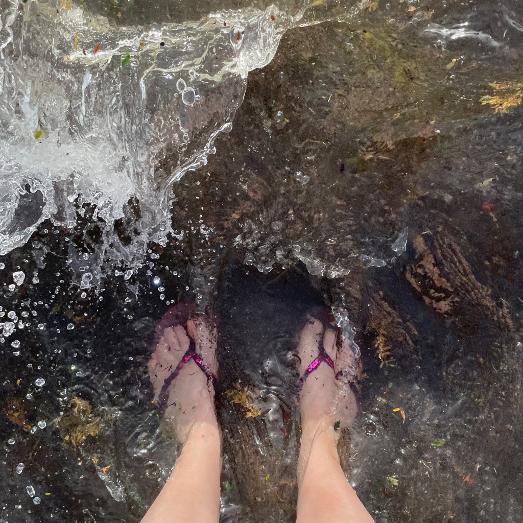 En remontant la côte ouest de l’île, nous avons fait un arrêt à Bouillante pour tremper nos pieds dans la source chaude. Beaucoup trop chaude pour s’y baigner, surtout avec la chaleur ambiante !