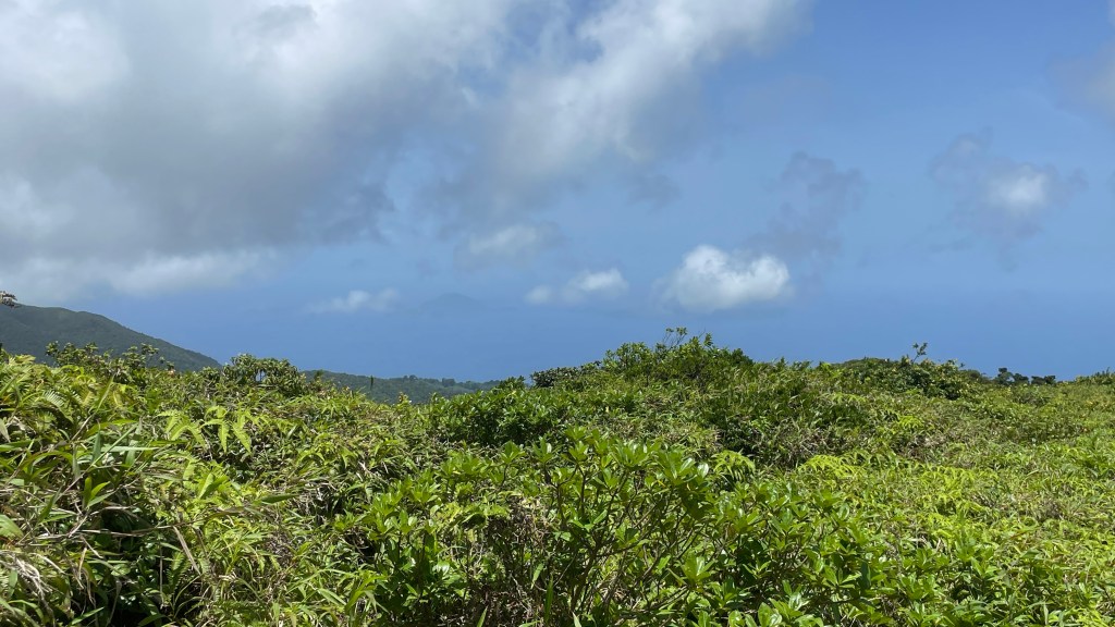 Aujourd’hui, direction la Soufrière pour une petite randonnée sur les traces du Pas-du-Roy. Nous avons commencé notre aventure aux Bains Jaunes, traversant la forêt tropicale pour arriver sur un plateau offrant une vue spectaculaire sur le volcan, la mer et les îles environnantes.