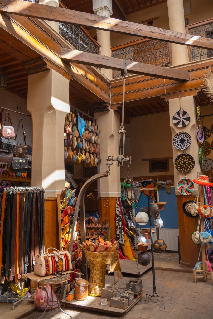 Les fondouks, ces caravanérails urbains, structurent le commerce à grande échelle. Ces bâtiments à étages, organisés autour d’une cour centrale, abritent marchandises et marchands venus de tout l’empire. Le fondouk le mieux conservé, celui des épices, témoigne encore de cette architecture commerciale sophistiquée avec ses cellules de stockage, ses bureaux de change, ses balances d’époque et ses appartements pour négociants de passage.