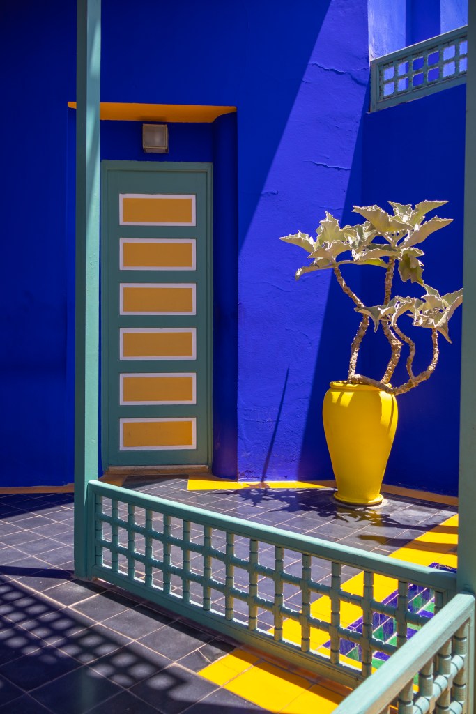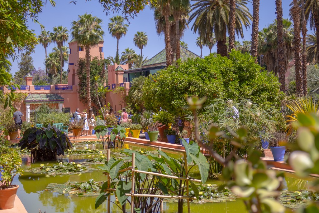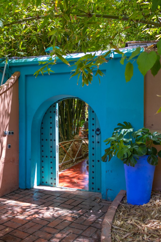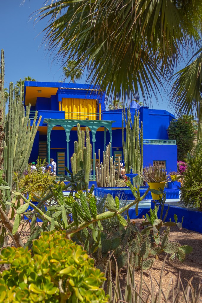 - Le Jardin Majorelle C’est le jardin principal. Créé par Majorelle comme un tableau vivant, il contient plus de 300 espèces botaniques : cactus, bambous, bougainvilliers. Le parcours est fortement surveillé. La foule y est quasi permanente.